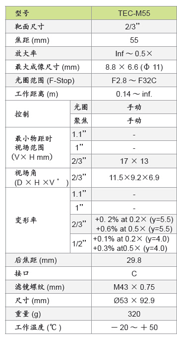 TEC-M55 远心镜头