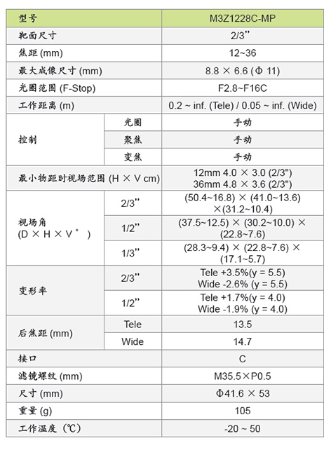 214398/M3Z1228C-MP/M3Z1228C-MP 百万像素系列变焦镜头