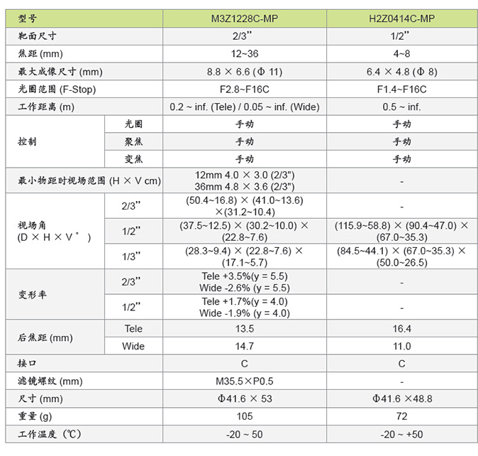 214399/H2Z0414C-MP/H2Z0414C-MP 百万像素系列变焦镜头
