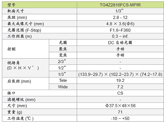214401/TG4Z2816FCS-MPIR/TG4Z2816FCS-MPIR 百万像素系列变焦镜头