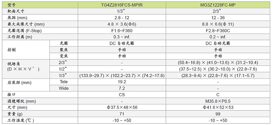 214402/MG3Z1228FC-MP/MG3Z1228FC-MP 百万像素系列变焦镜头