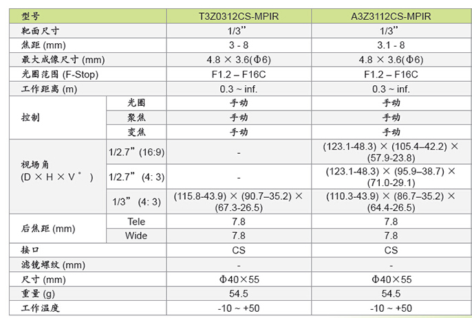 A3Z3112CS-MPIR 百万像素系列变焦镜头