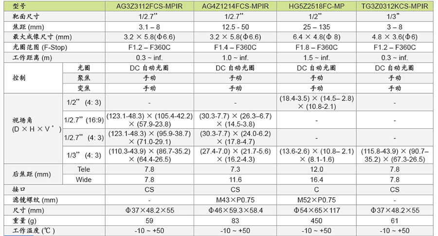 AG4Z1214FCS-MPIR 百万像素系列变焦...