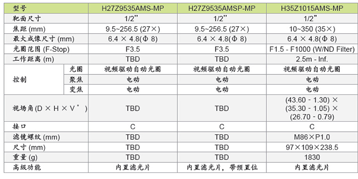 H35Z1015AMS-MP 百万像素电动变倍镜头