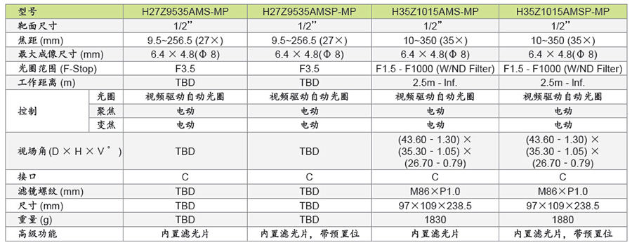 H35Z1015AMSP-MP 百万像素电动变倍镜头