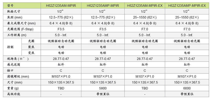 H62Z1235AMP-MPIR-EX 百万像素电动变倍镜头