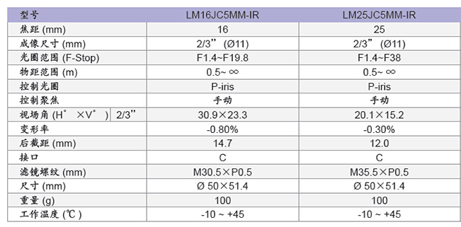 214508/LM25JC5MM-IR/LM25JC5MM-IR 5百万P-Iris镜头