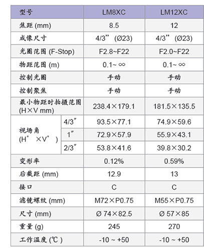 214511/LM12XC/LM12XC 8百万像素定焦镜头