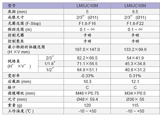 214517/LM8JC10M/LM8JC10M 超高精度千万像素镜头
