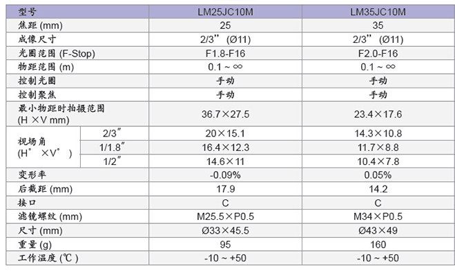 LM35JCM 百万像素定焦镜头