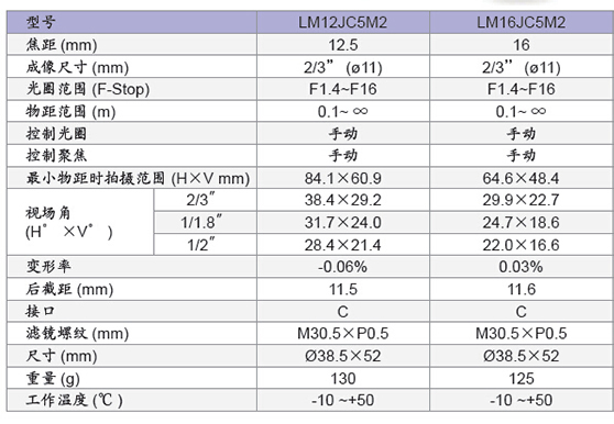 LM16JC5M2 5百万像素镜头(紧凑型)