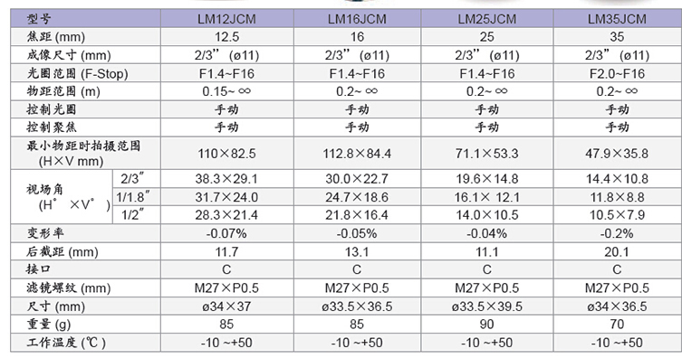 LM12JCM 百万像素定焦镜头