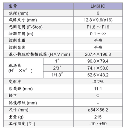 214537/LM6HC/LM6HC 1"百万像素定焦镜头