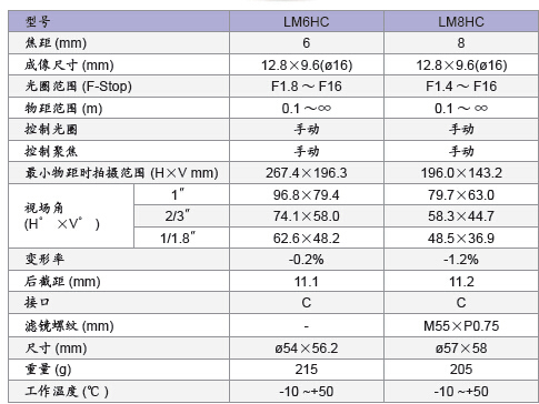 214538/LM8HC/LM8HC 1"百万像素定焦镜头