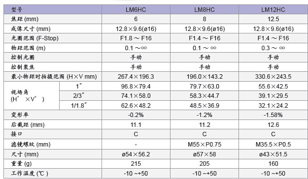 214539/LM12HC/LM12HC 1"百万像素定焦镜头