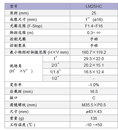 LM16JC5M2 5百万像素镜头(紧凑型)