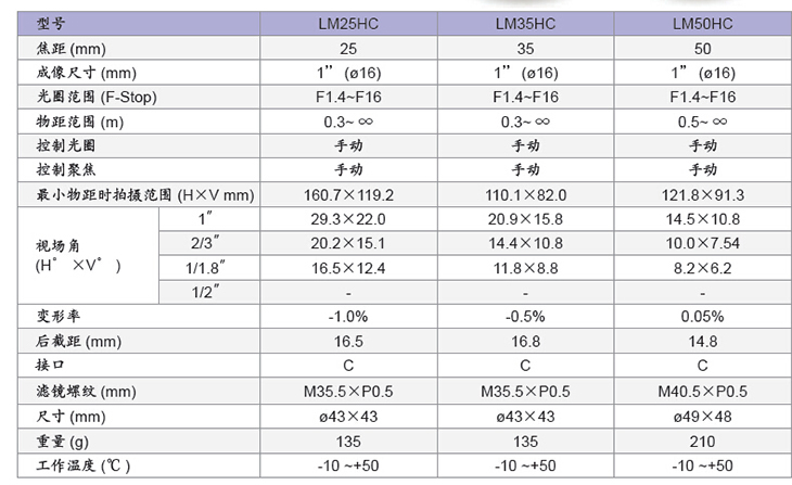 214543/LM50HC/LM50HC 1"百万像素定焦镜头