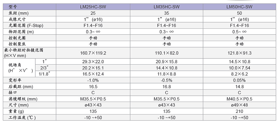 LM50HC-SW 1"百万像素近红外定焦镜头