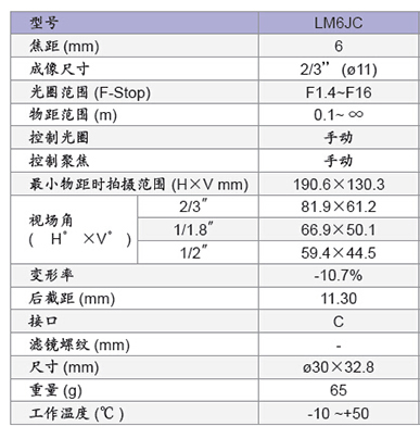 214551/LM6JC/LM6JC 2/3"入门级FA镜头