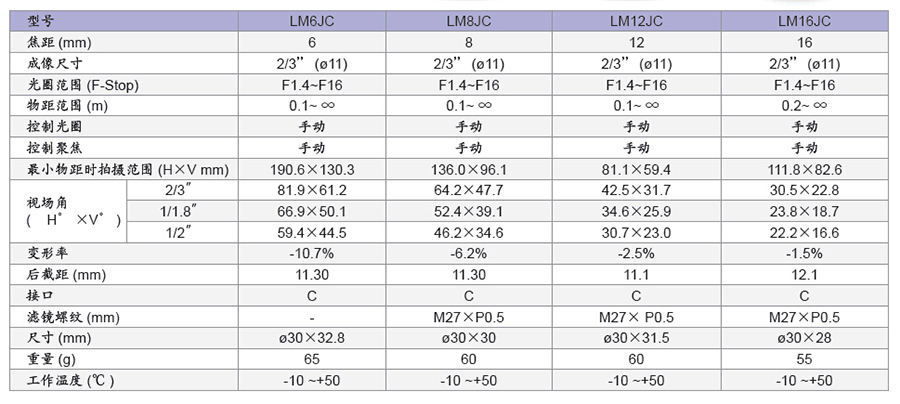 214554/LM16JC/LM16JC 2/3"入门级FA镜头