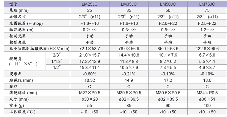 LM75JC 2/3"入门级FA镜头