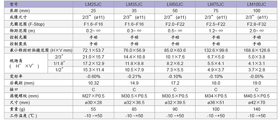 214559/LM100JC/LM100JC 2/3"入门级FA镜头