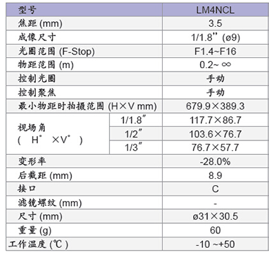 214560/LM4NCL/LM4NCL 1/1.8"入门级FA镜头