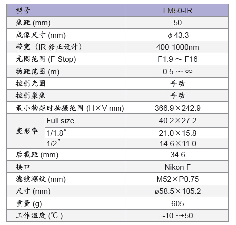 214567/LM50-IR/LM50-IR 大靶面近红外镜头