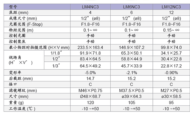 LM12NC3 3CCD彩色面阵摄像机专用镜头