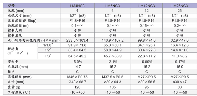LM25NC3 3CCD彩色面阵摄像机专用镜头