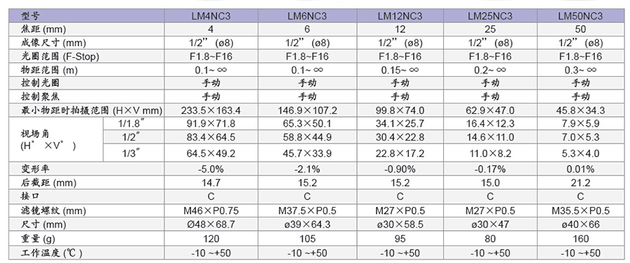 LM50NC3 3CCD彩色面阵摄像机专用镜头