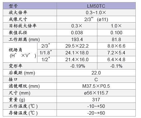 214582/LM50TC/LM50TC 变倍微距远心镜头