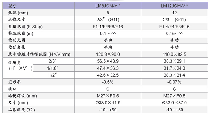 214589/LM12JCM-V/LM12JCM-V 高分辨率FA/MV镜头