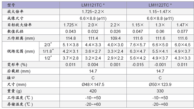 214595/LM1122TC/LM1122TC 2/3"5百万像素远心镜头