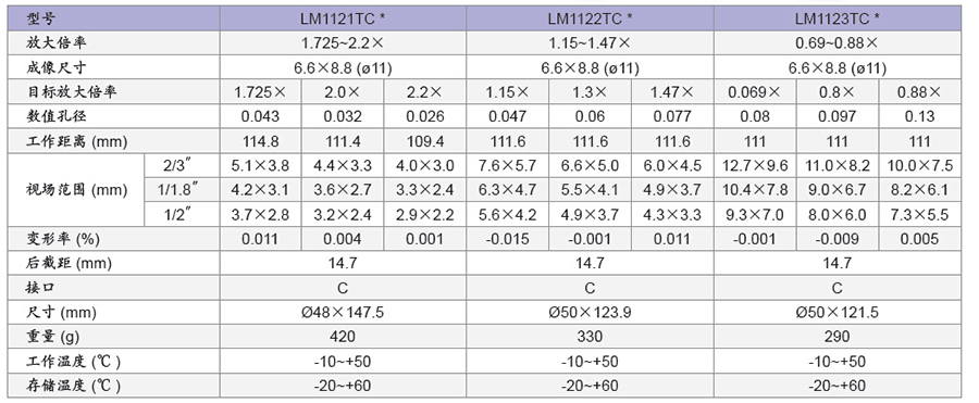 214596/LM1123TC/LM1123TC 2/3"5百万像素远心镜头