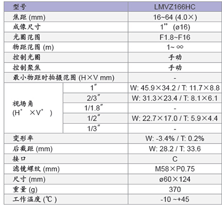 214597/LMVZ166HC/LMVZ166HC 百万像素变焦镜头