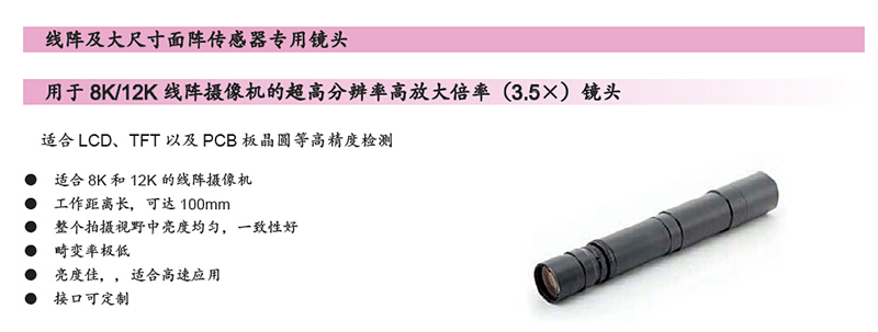 LSP350用于8k/12k线阵摄像机的超高分辨率高放大倍率3.5X镜头