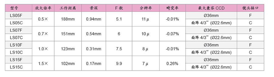 LS系列固定放大倍率F接口镜头