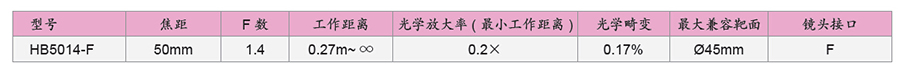 214625/HB5014-F/HB-F系列用于线阵摄影机的大孔径镜头