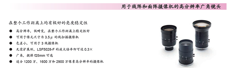 214628/LSF5028F/LSF-F系列用于线阵和面阵摄像机的高分辨率广角镜头