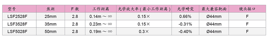 214626/LSF2528F/LSF-F系列用于线阵和面阵摄像机的高分辨率广角镜头