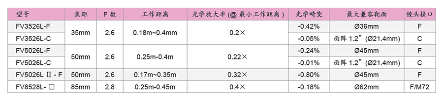 214643/FV5026L II-F/FV-L系列用于线阵和面阵摄像机的微距镜头