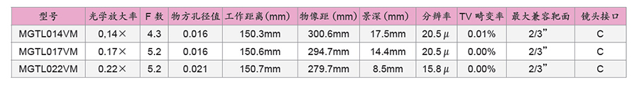 214651/MGTL022VM/MGTL-VM系列5百万像素低倍率远心镜头