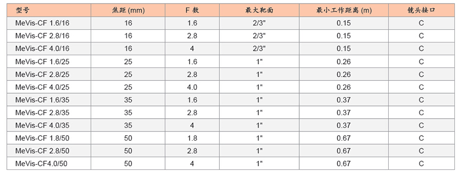Mevis-CF高分辨率百万像素C接口固定光圈镜头