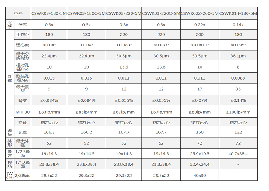 214872/CSWK03-220-5M/CSWK系列双远心镜头