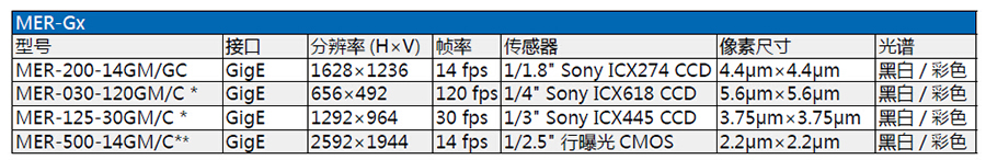 215836/MER-030-120GC/MER-G系列GigE接口数字摄像机