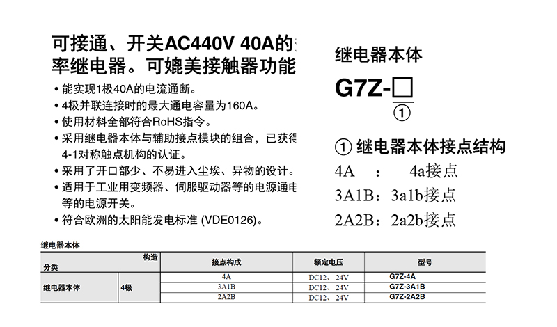 G7Z 可接通、开关AC440V~40A的多级功率继电器