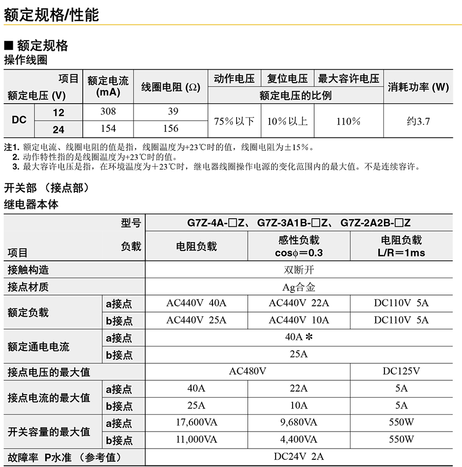 216304/G7Z-3A1B DC12/G7Z 可接通、开关AC440V~40A的多级功率继电器