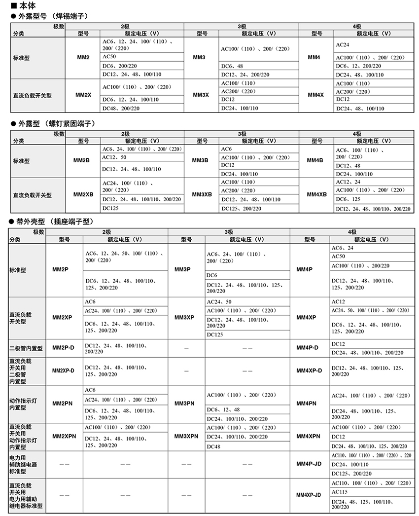 216436/MM4XP-JD AC110/MM 具有稳定的接触可靠性和高度耐用性的功率继电器