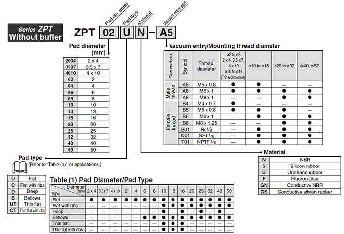 217909/ZPT04UN-A5/纵向真空进入真空吸盘ZPT